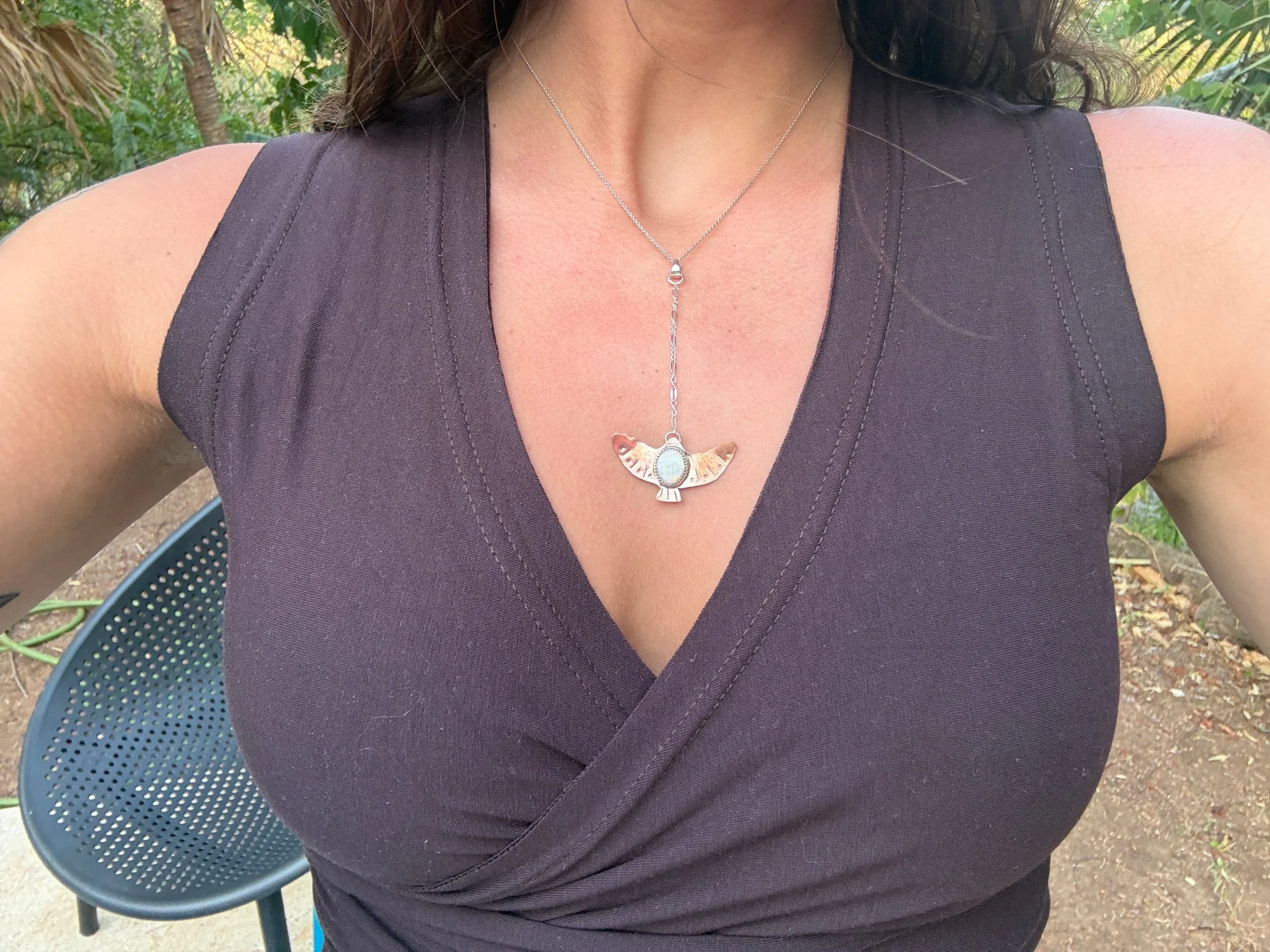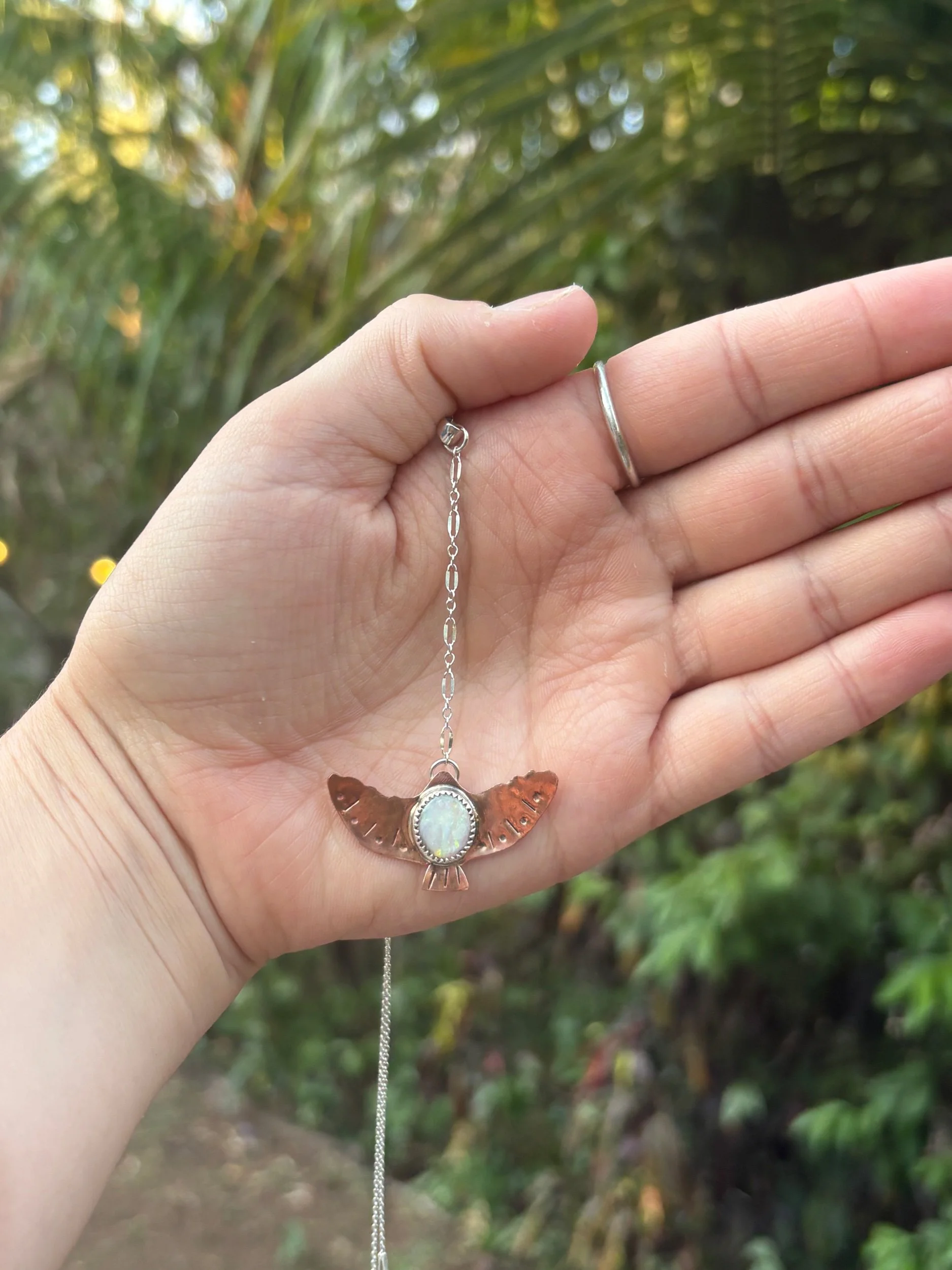 Image 1 of 2 Image 2 of 2 Rainbow Opal Falcon Pendant $72.00 Handmade with sterling silver, copper, and natural rainbow opal Add To Cart Added! Handmade with sterling silver, copper, and natural rainbow opal