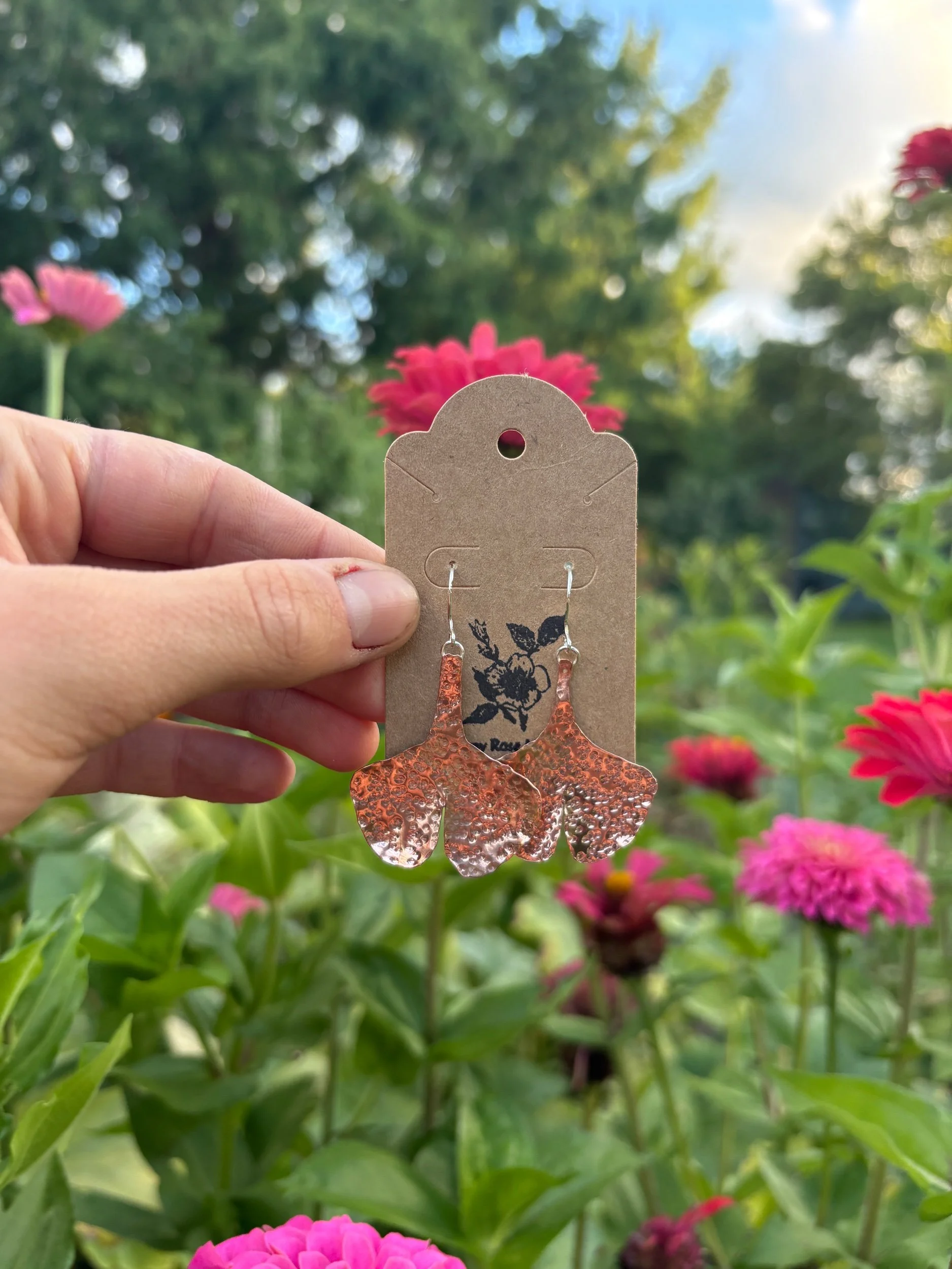 Image 1 of 1 Copper Ginko Leaf Earrings $28.00 Copper Ginko leaves with sterling silver ear wires. Quantity: Add To Cart Added! Copper Ginko leaves with sterling silver ear wires.